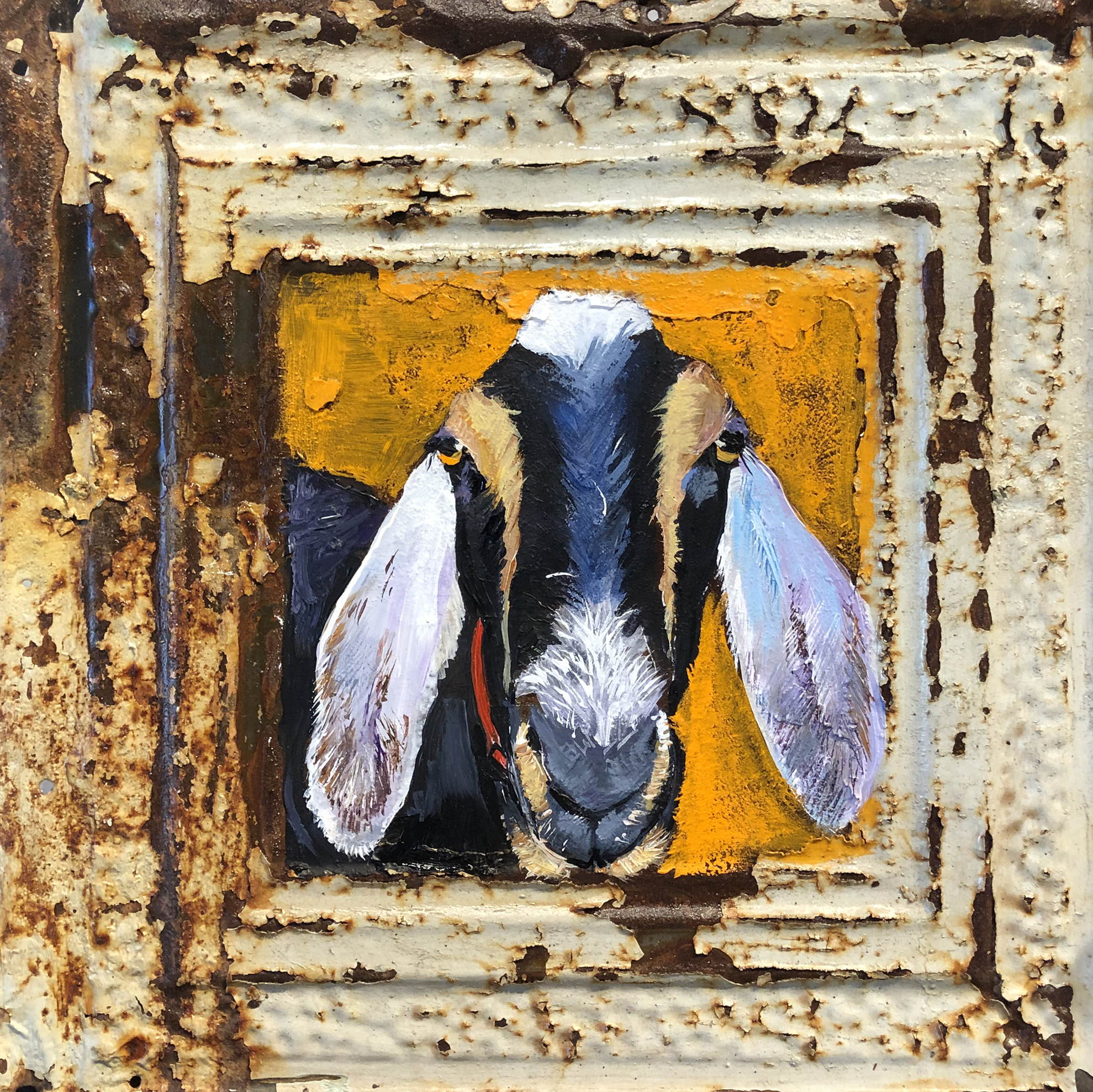 Acrylic painting on vintage 12″sq ceiling tile