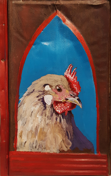 Hell ‘n Reddy_6 ← Previous Next → Hell ‘n Reddy – $89.00 Acrylic painting on 14″ x 9″ vintage tin roofing tile.