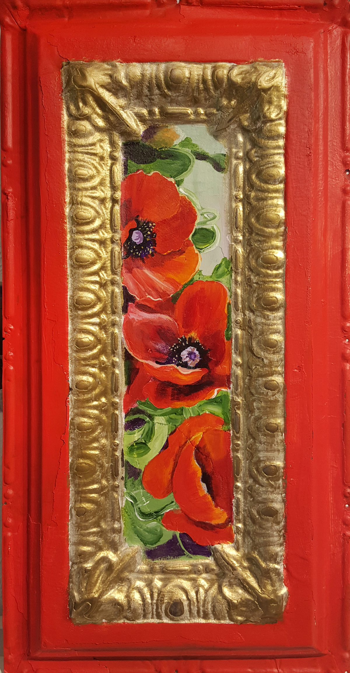 remembrance ← Previous Next → remembrance – $199.00 Acrylic painting on 24″x 12″ vintage tin ceiling tile