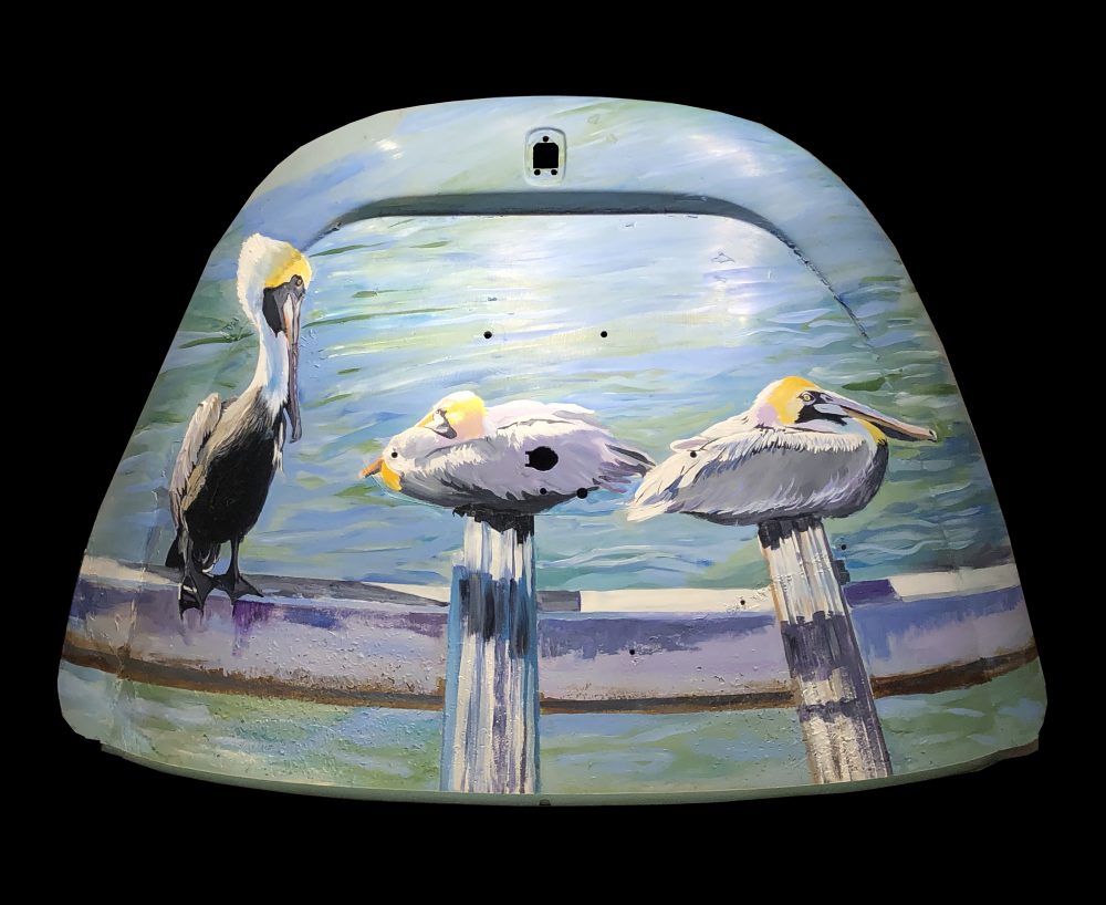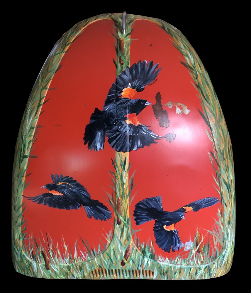 Recently, I was able to get my hands on 7) hoods and 11) deck lids from vintage Volkswagen Beetles. It was a great find and I immediately started painting on them this past two weeks. It has been so fun and satisfying!!! There is something about creating nature with old industrial canvases that can now be viewed inside out outside the home for enjoyment. They are recognizable and most people can identify with them due to their unique shape. Volkswagen announced its intent to end production of the car in 2019 after 80 years of production.